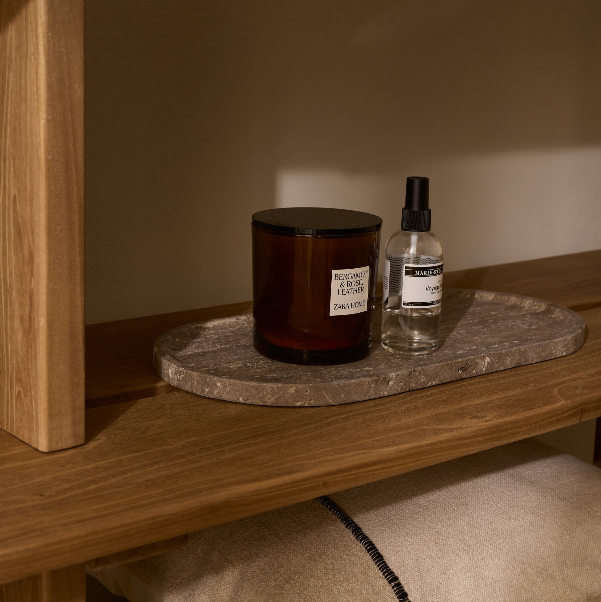 A grand titanium travertine round tray that becomes the centerpiece of any room. Cut from a single natural slab and polished smooth. Its generous diameter makes it perfect for a coffee table, dining table, or console. Every piece is unique.