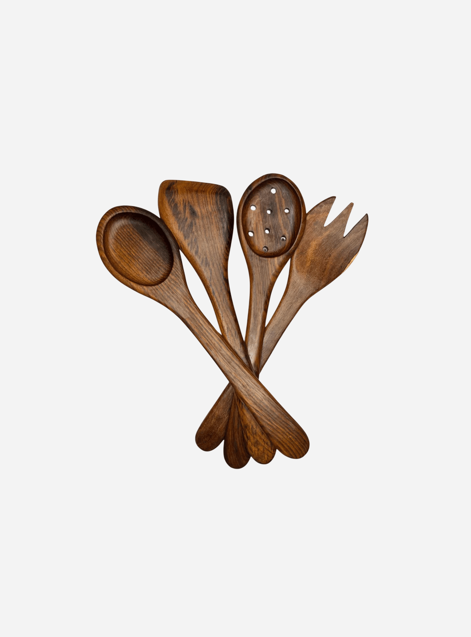 Set Includes: 4 Pieces - Spoon, Strainer Spoon, Angled Spatula, Fork