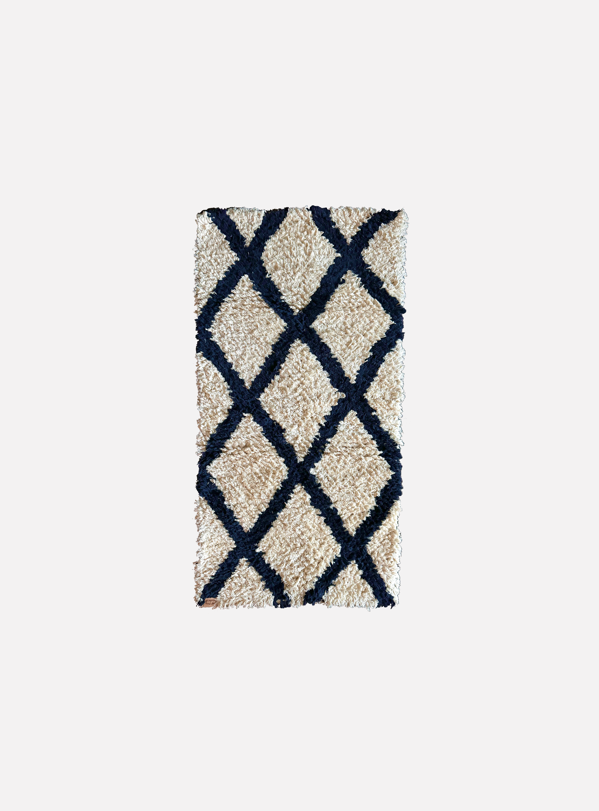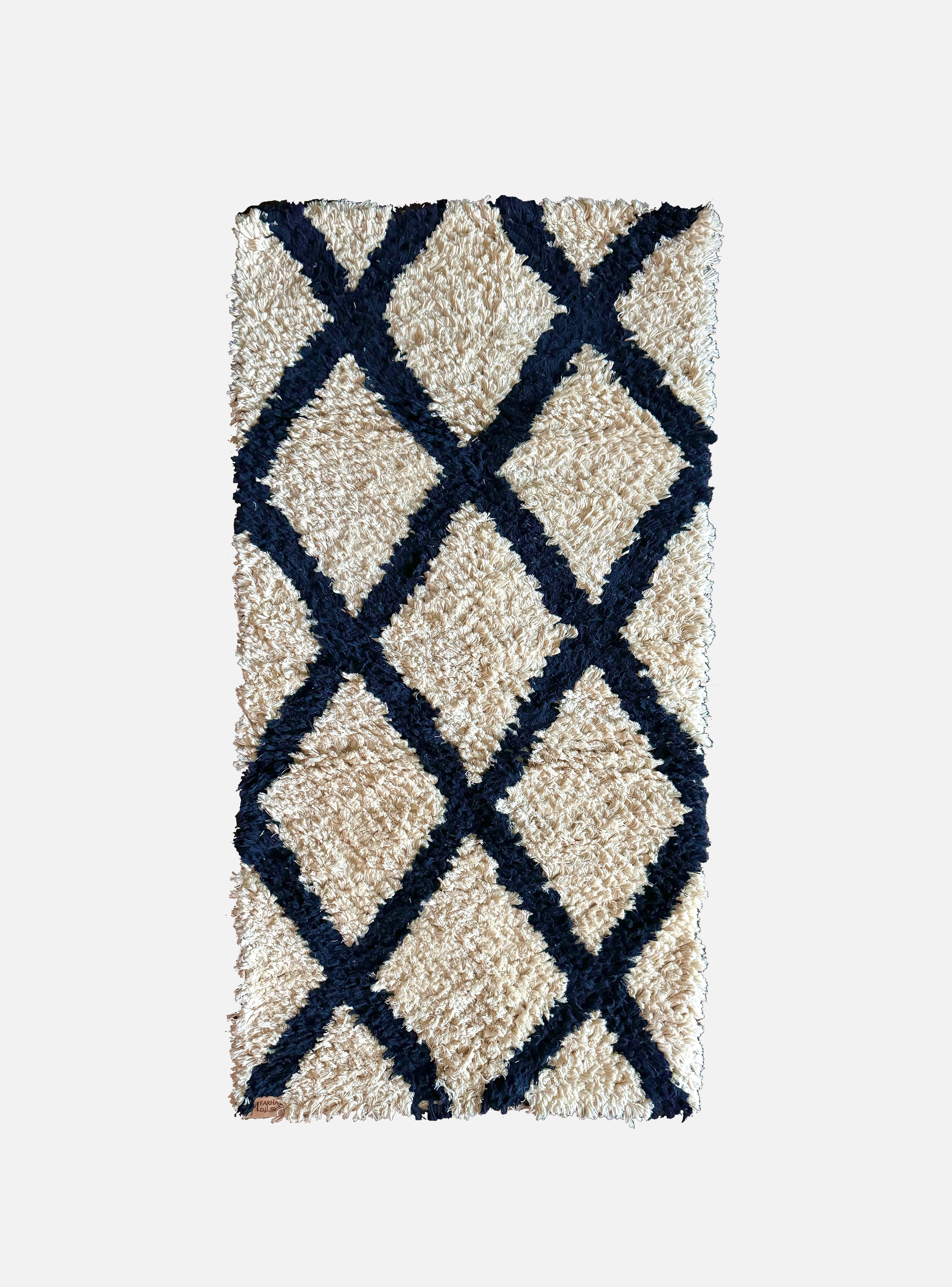 Adu eleganță atemporală în casa ta cu covorul țesut manual cu model Diamond Lattice de la Kilim Farha. Realizat de artizani egipteni pricepuți, acest covor lucrat manual combină lâna moale și bumbacul rezistent pentru a crea o textură luxoasă. Având un model îndrăzneț de zăbrele cu romburi albastru închis pe o bază cremoasă de culoarea fildeșului, este piesa de accent perfectă pentru living, dormitor sau hol, îmbinând tradiția cu farmecul contemporan.