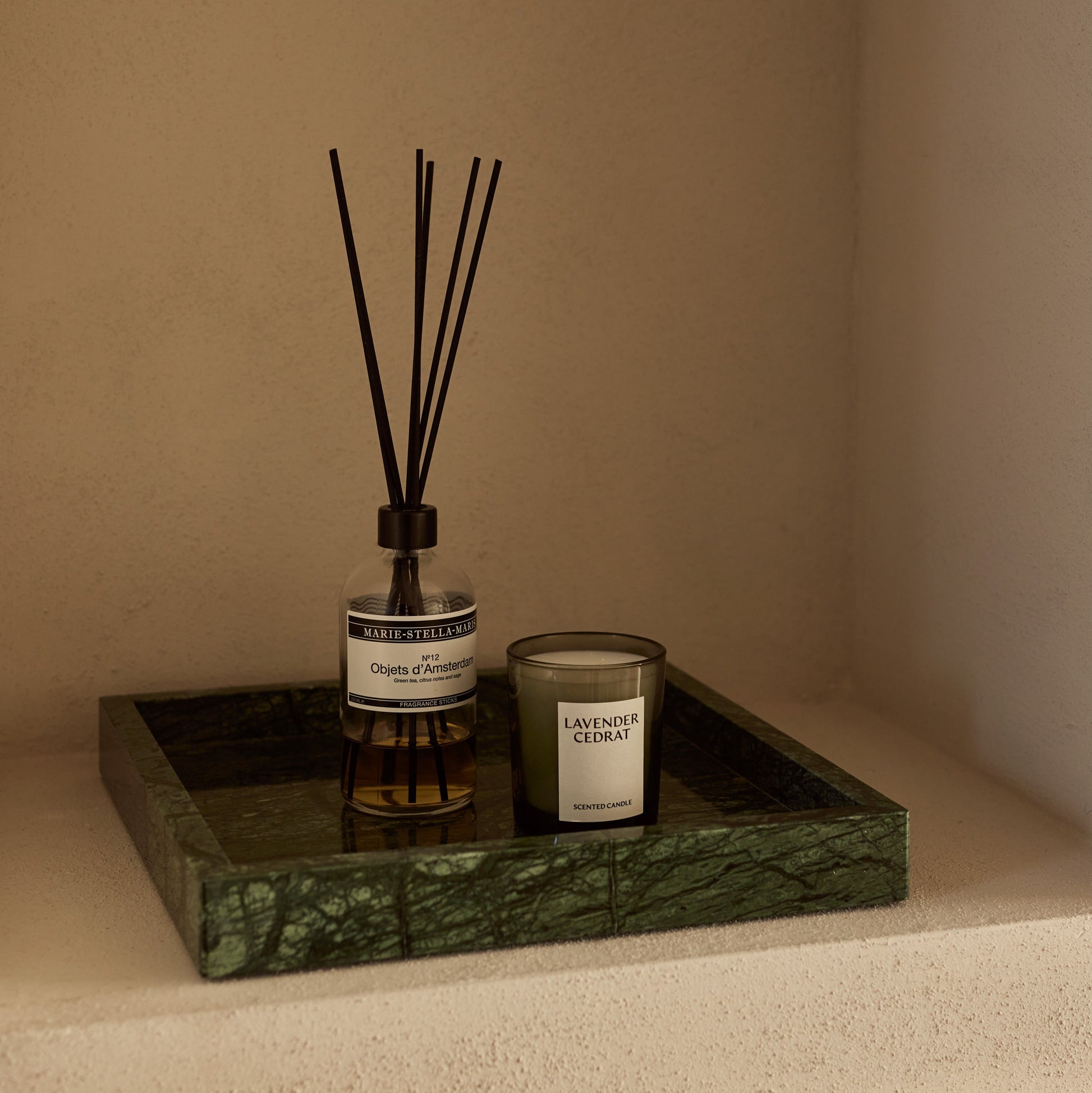 A square Verde Guatemala green marble tray that commands attention. Cut from a single natural slab with raised edges to keep everything in place. Ideal for a coffee table, ottoman, or dining centerpiece. Every piece is unique.